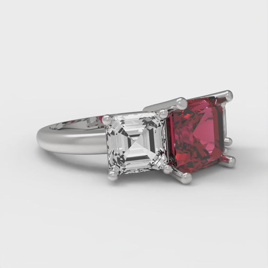 4 cttw Natural Garnet Three-Stone Engagement Ring - Solid Gold (Square Emerald Cut,7.0X7.0mm)