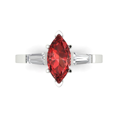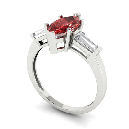 2 cttw Natural Garnet Three-Stone Engagement Ring - Solid Gold (Marquise Cut,11x5.5mm)