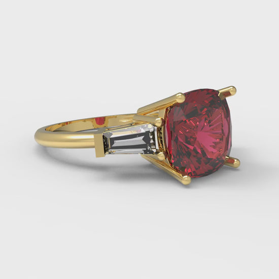 3 cttw Natural Garnet Three-Stone Engagement Ring - Solid Gold (Cushion Cut,8.0mm)