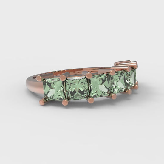 1.75 cttw Simulated Green Diamond Princess Cut Rose Gold Eternity Wedding Band