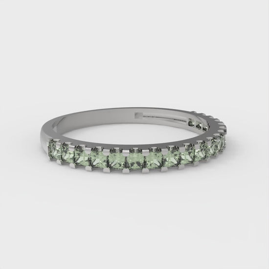 0.285 cttw Simulated Green Diamond Princess Cut White Gold Eternity Wedding Band