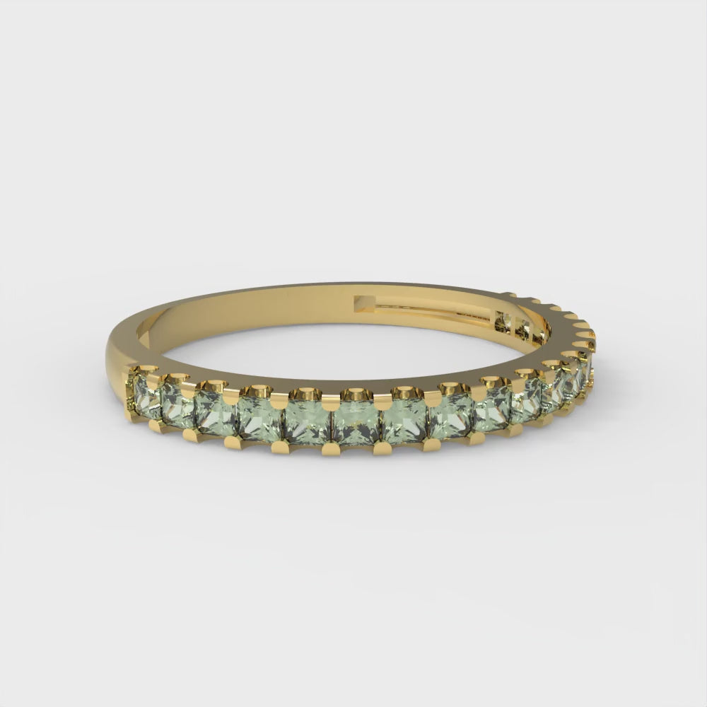 0.285 cttw Simulated Green Diamond Princess Cut Yellow Gold Eternity Wedding Band