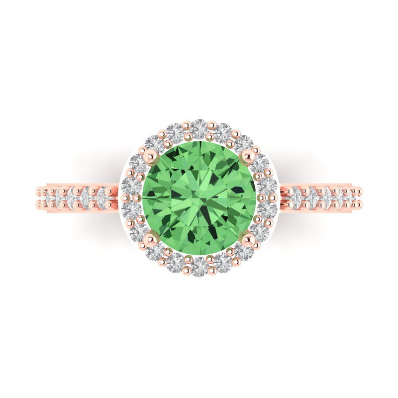 1.86 cttw Zirconia Simulated Green Diamond Hidden Halo Engagement Ring - Solid Gold (VVS1, Round Cut,7.5mm)