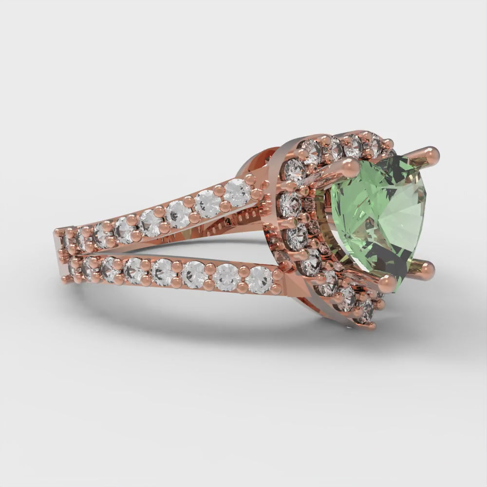 1.49 cttw Zirconia Simulated Green Diamond Hidden Halo Engagement Ring - Solid Gold (VVS1, Heart Cut,6.5mm)
