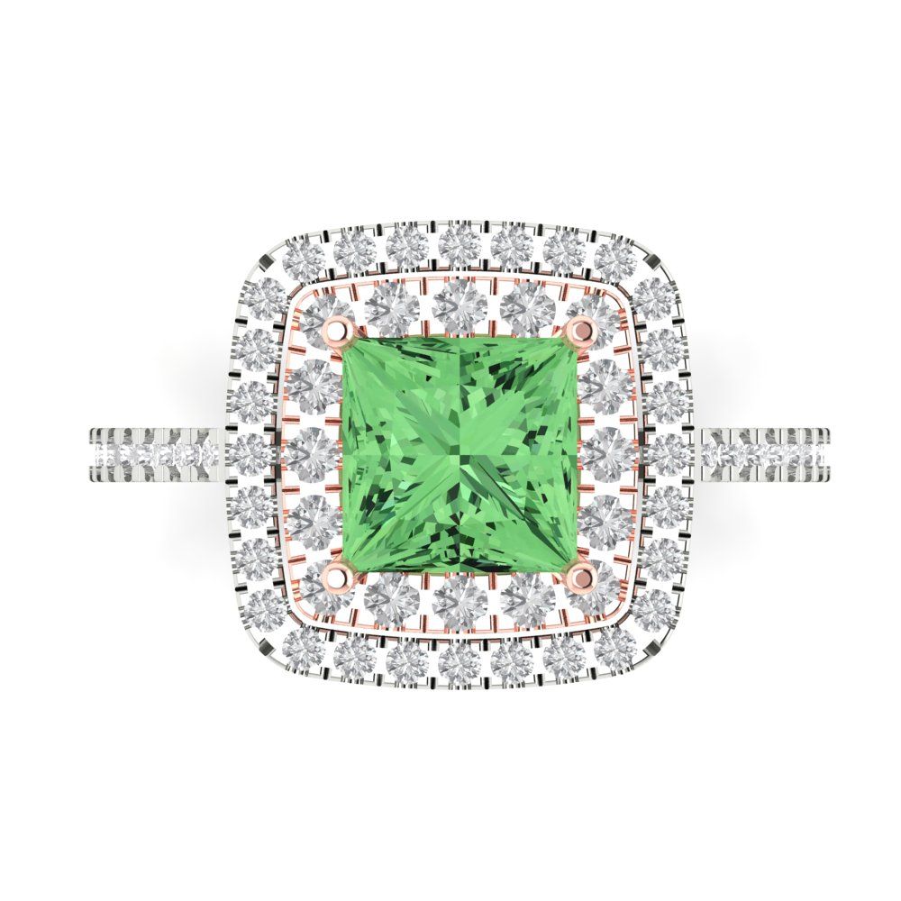 2.07 cttw Zirconia Simulated Green Diamond Hidden Halo Engagement Ring - Solid Gold (VVS1, Princess Cut,6.5mm)