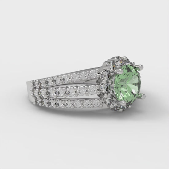 1.83 cttw Zirconia Simulated Green Diamond Hidden Halo Engagement Ring - Solid Gold (VVS1, Round Cut,6.5mm)