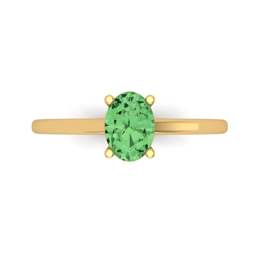 1 cttw Zirconia Simulated Green Diamond Solitaire Engagement Ring - Solid Gold (VVS1, Oval Cut,7x5mm)