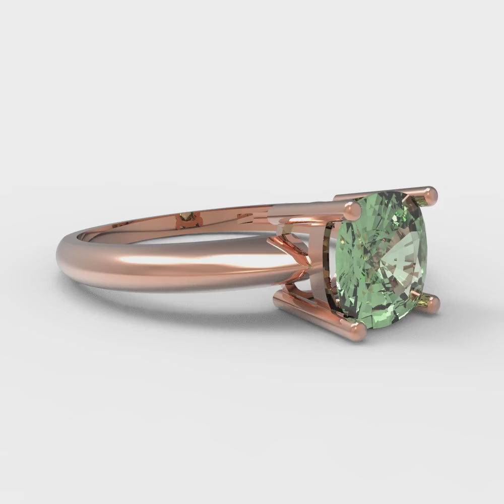 1.5 cttw Zirconia Simulated Green Diamond Solitaire Engagement Ring - Solid Gold (VVS1, Cushion Cut,6.5mm)