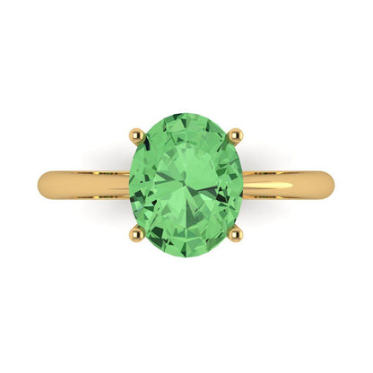 2.5 cttw Zirconia Simulated Green Diamond Solitaire Engagement Ring - Solid Gold (VVS1, Oval Cut,9.5x7.5mm)