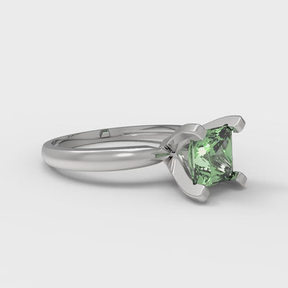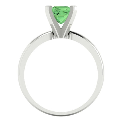 1 cttw Zirconia Simulated Green Diamond Solitaire Engagement Ring - Solid Gold (VVS1, Princess Cut,5.5mm)