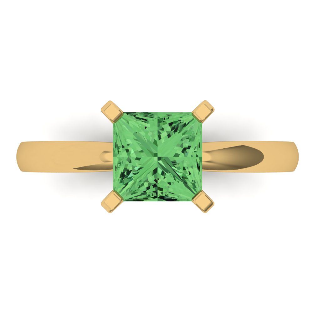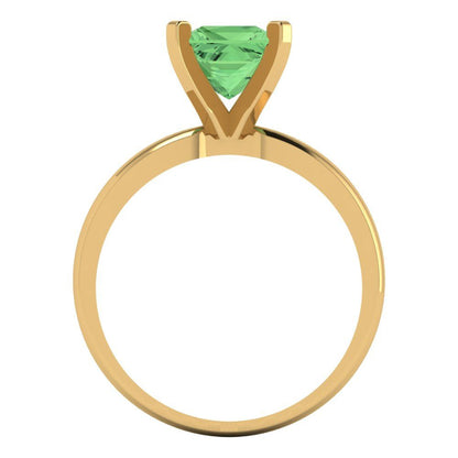 1.5 cttw Zirconia Simulated Green Diamond Solitaire Engagement Ring - Solid Gold (VVS1, Princess Cut,6.5mm)