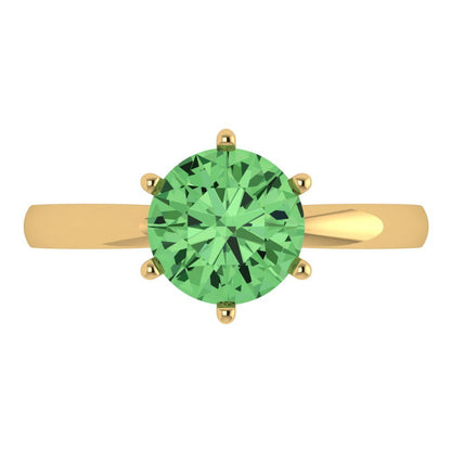 2 cttw Zirconia Simulated Green Diamond Solitaire Engagement Ring - Solid Gold (VVS1, Round Cut,8.0mm)