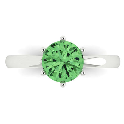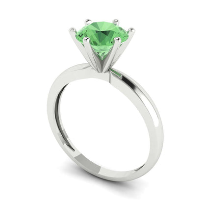 1.5 cttw Zirconia Simulated Green Diamond Solitaire Engagement Ring - Solid Gold (VVS1, Round Cut,7.5mm)