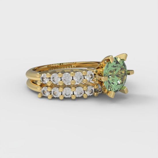 1.66 cttw Round Cut Simulated Green Diamond Bridal Set - Solid Yellow Gold Engagement Ring & Wedding Band