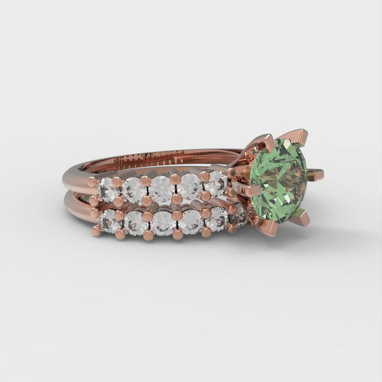 1.66 cttw Round Cut Simulated Green Diamond Bridal Set - Solid Rose Gold Engagement Ring & Wedding Band
