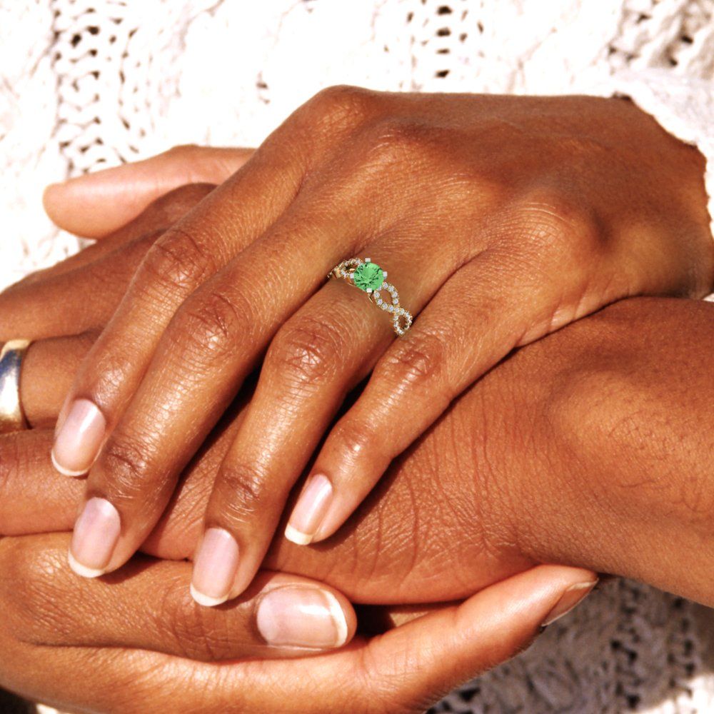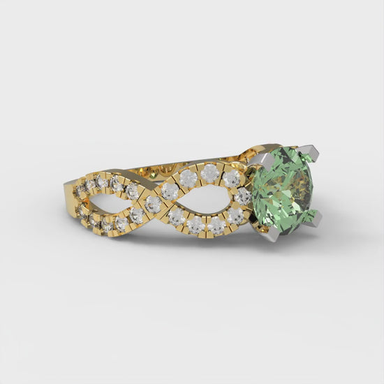 1.42 cttw Zirconia Simulated Green Diamond Solitaire with Zirconia Simulated Diamond Accents Engagement Ring - Solid Gold (VVS1, Round Cut,6.5mm)