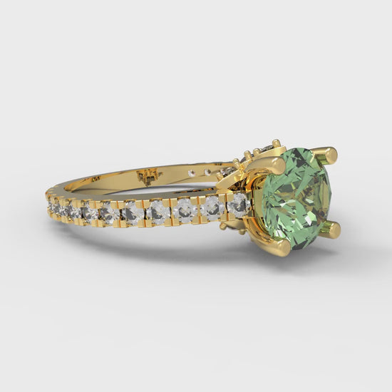 1.465 cttw Zirconia Simulated Green Diamond Solitaire with Zirconia Simulated Diamond Accents Engagement Ring - Solid Gold (VVS1, Round Cut,6.5mm)