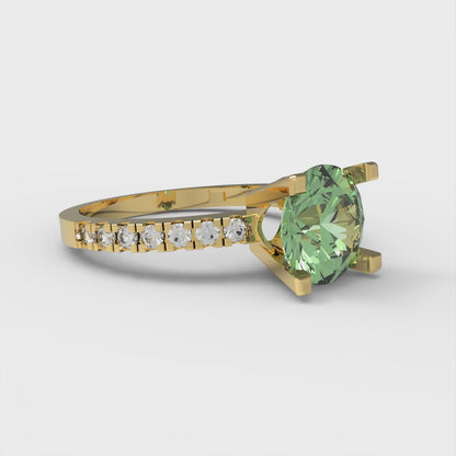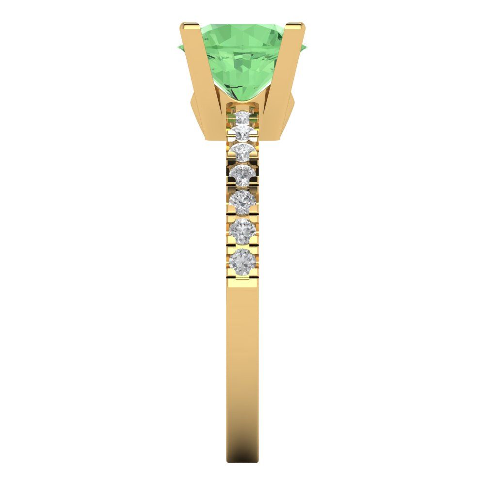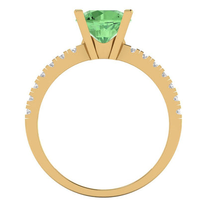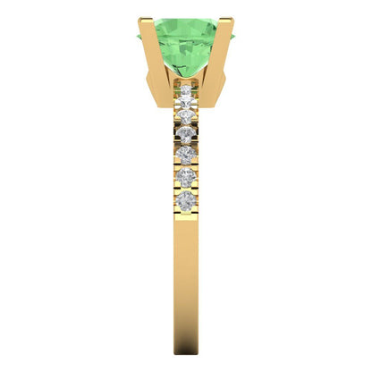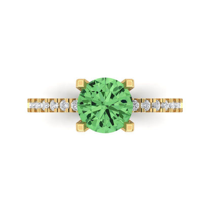 1.71 cttw Zirconia Simulated Green Diamond Solitaire with Zirconia Simulated Diamond Accents Engagement Ring - Solid Gold (VVS1, Round Cut,7.5mm)