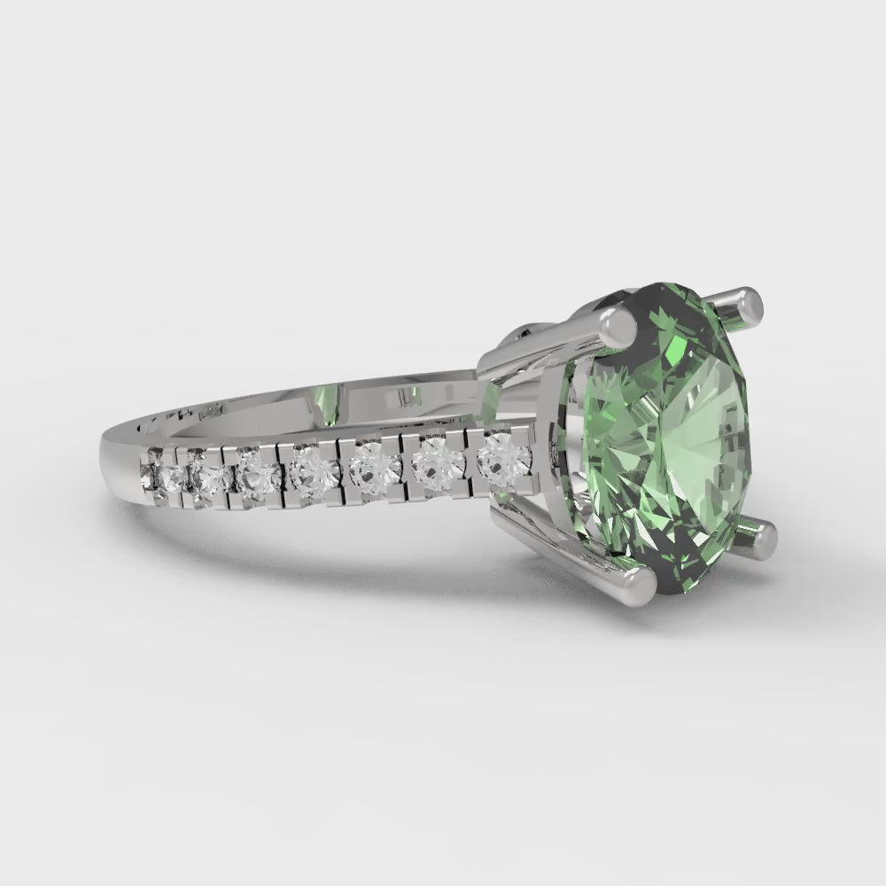 2.21 cttw Zirconia Simulated Green Diamond Solitaire with Zirconia Simulated Diamond Accents Engagement Ring - Solid Gold (VVS1, Oval Cut,9X7mm)
