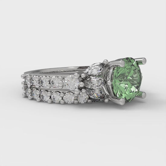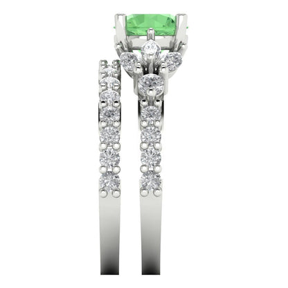 2.94 cttw Round Cut Simulated Green Diamond Bridal Set - Solid White Gold Engagement Ring & Wedding Band