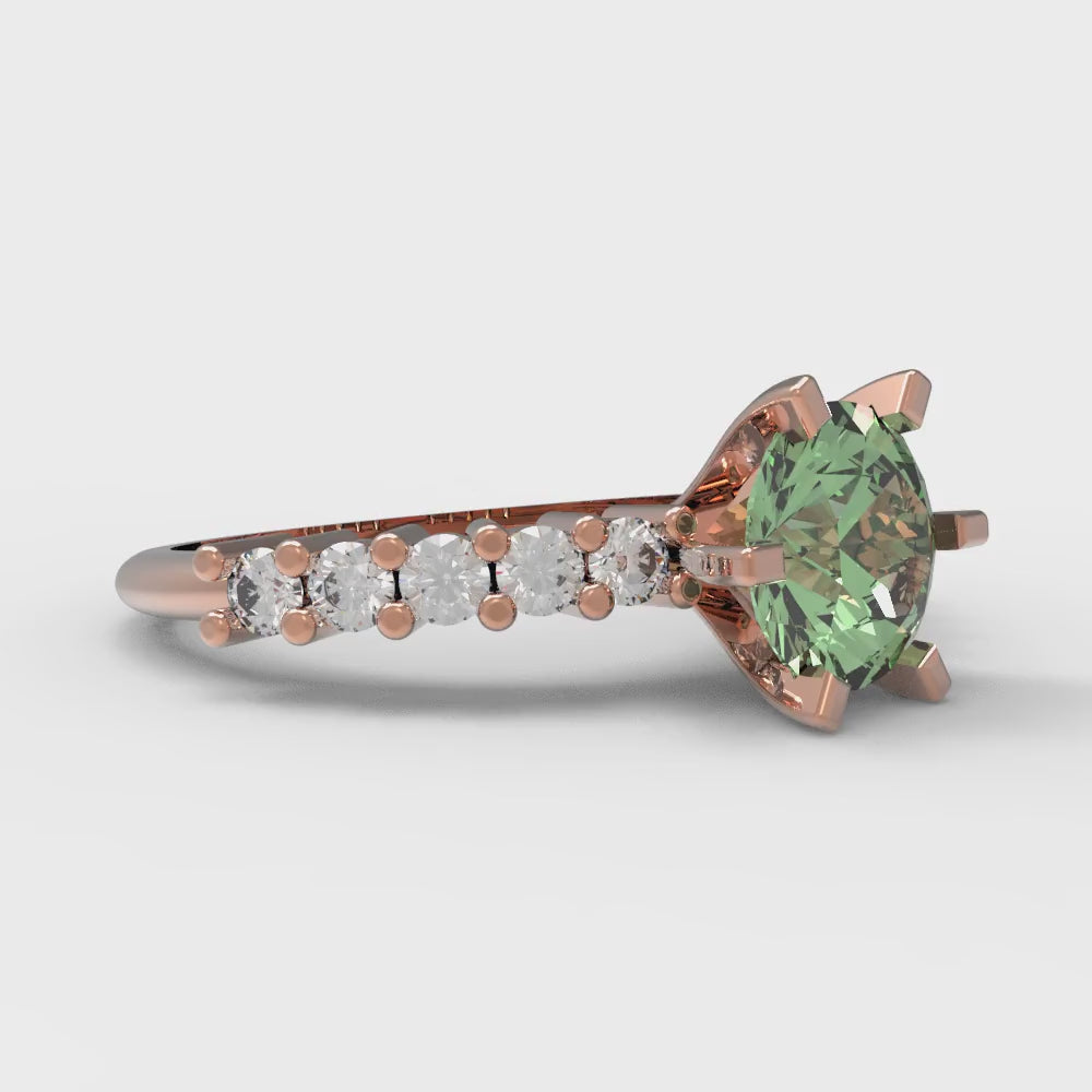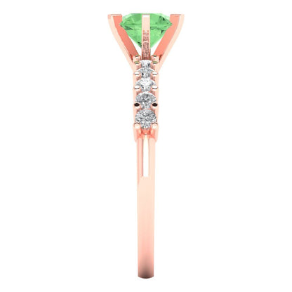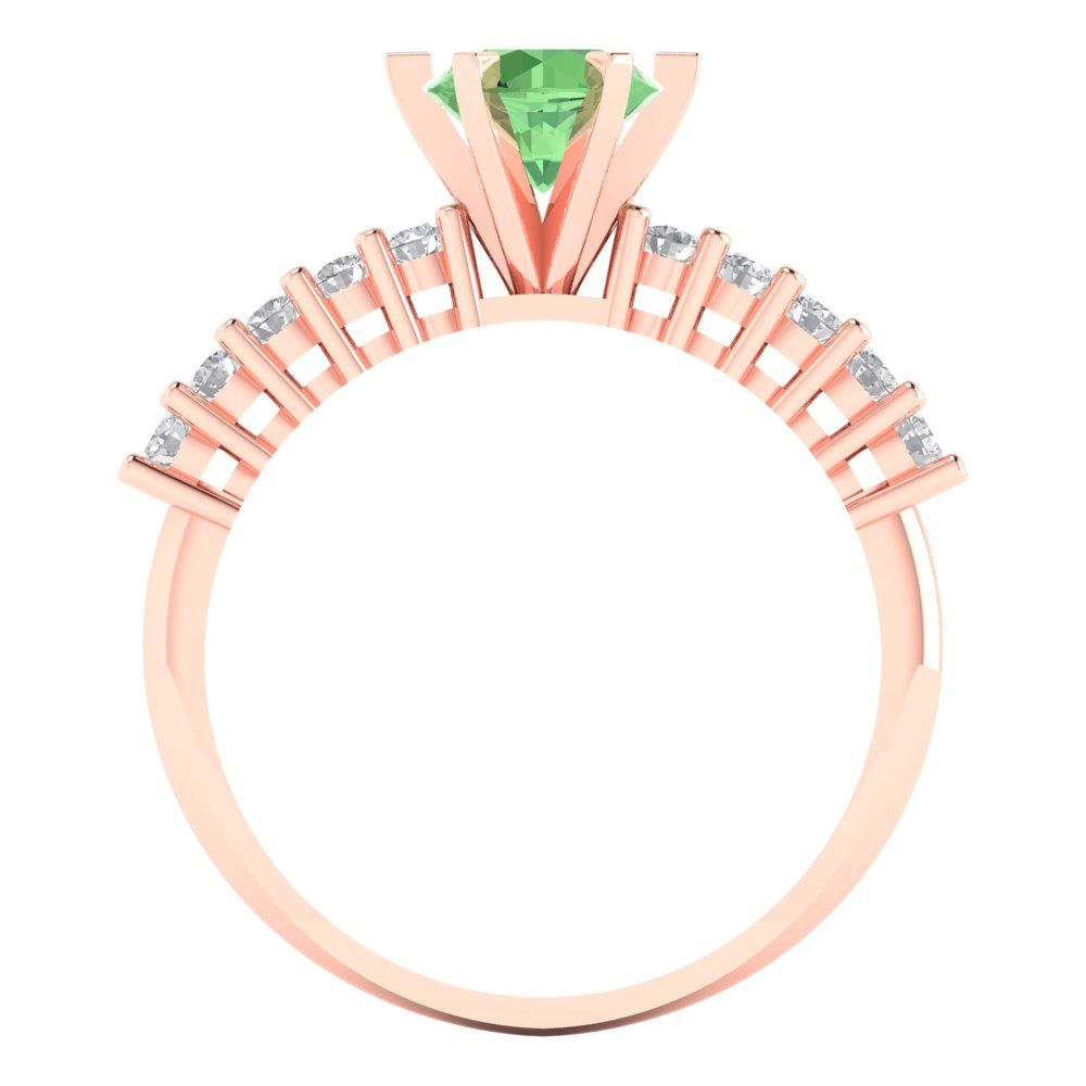 1.05 cttw Zirconia Simulated Green Diamond Solitaire with Zirconia Simulated Diamond Accents Engagement Ring - Solid Gold (VVS1, Round Cut,6.0mm)