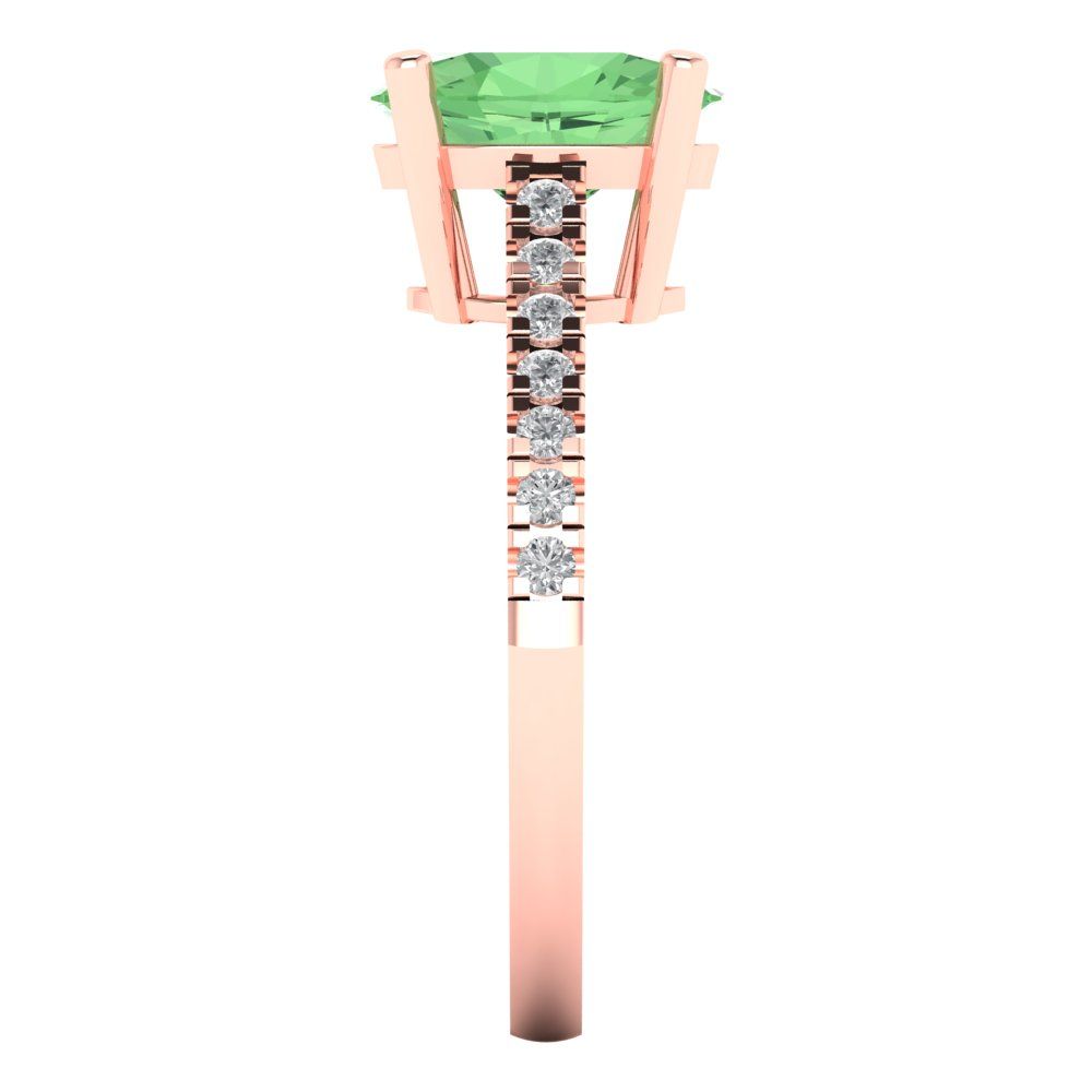 2.21 cttw Zirconia Simulated Green Diamond Solitaire with Zirconia Simulated Diamond Accents Engagement Ring - Solid Gold (VVS1, Oval Cut,9X7mm)