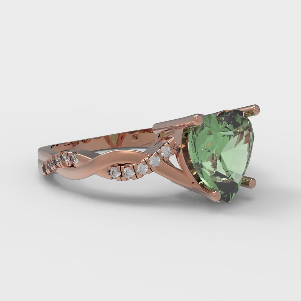 2.1 cttw Zirconia Simulated Green Diamond Solitaire with Zirconia Simulated Diamond Accents Engagement Ring - Solid Gold (VVS1, Heart Cut,8mm)
