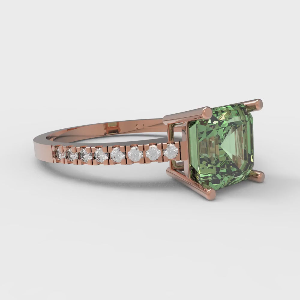 2.7 cttw Zirconia Simulated Green Diamond Solitaire with Zirconia Simulated Diamond Accents Engagement Ring - Solid Gold (VVS1, Asscher Cut,6.5mm)