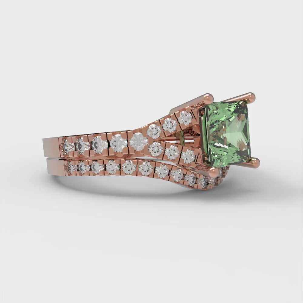 3.4 cttw Princess Cut Simulated Green Diamond Bridal Set - Solid Rose Gold Engagement Ring & Wedding Band