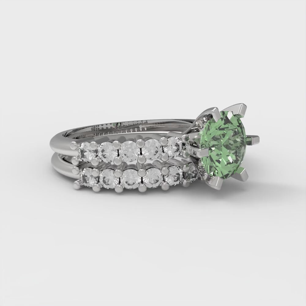 1.66 cttw Round Cut Simulated Green Diamond Bridal Set - Solid White Gold Engagement Ring & Wedding Band