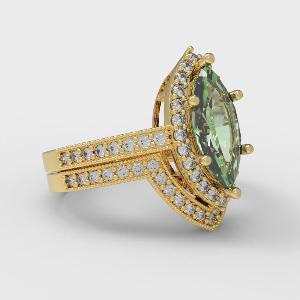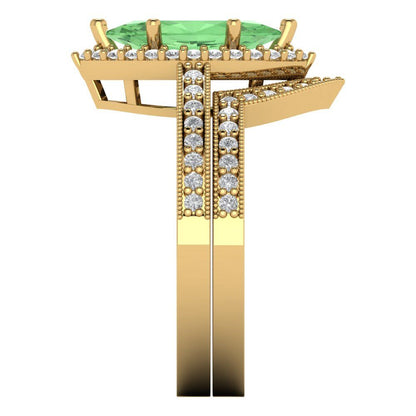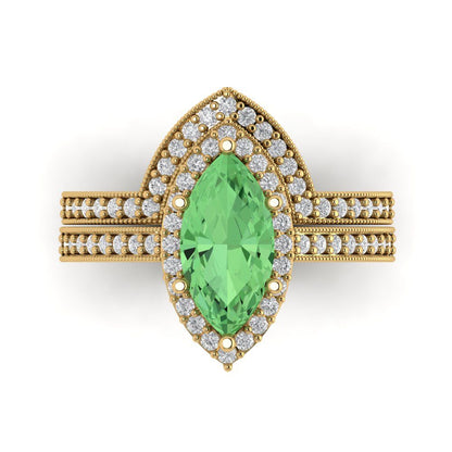 2.4875 cttw Marquise Cut Simulated Green Diamond Bridal Set - Solid Yellow Gold Engagement Ring & Wedding Band