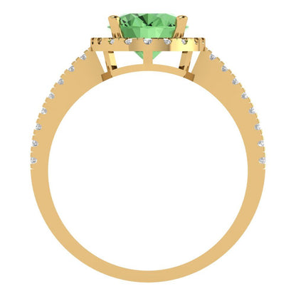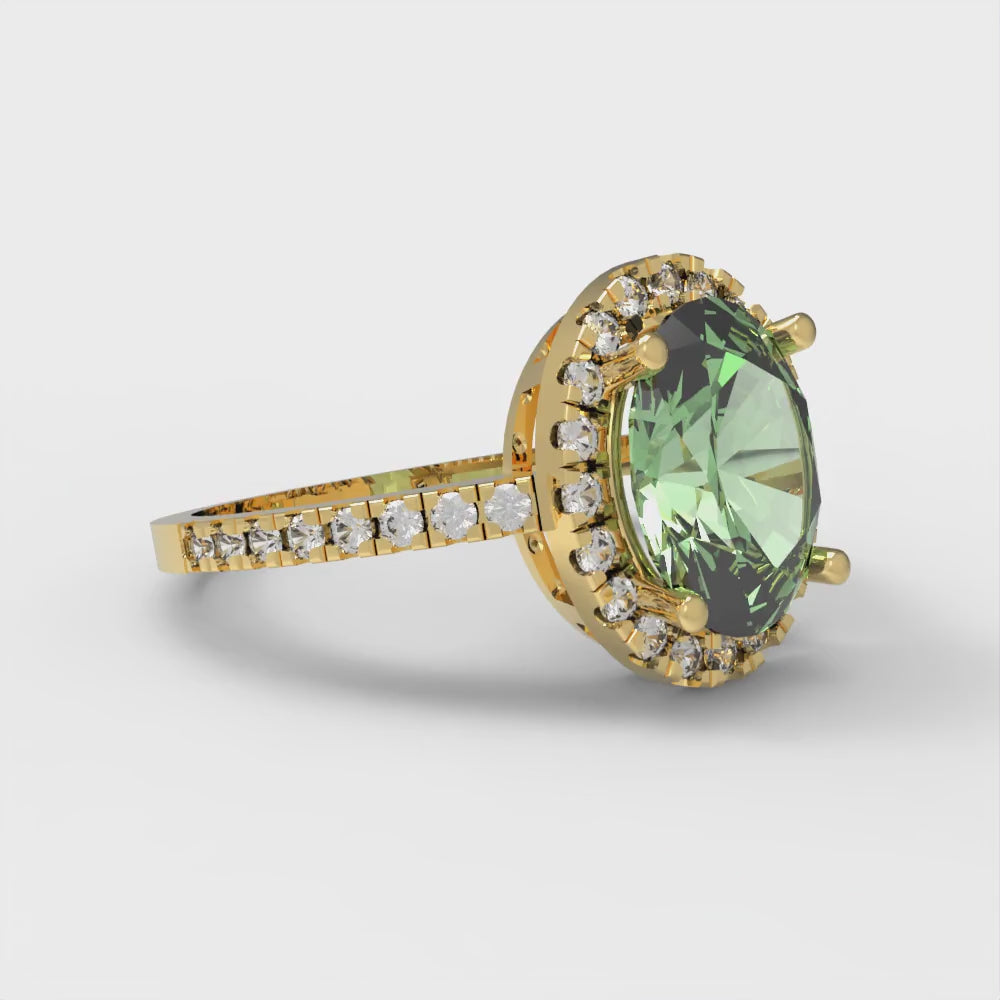 2.27 cttw Zirconia Simulated Green Diamond Solitaire with Zirconia Simulated Diamond Accents Engagement Ring - Solid Gold (VVS1, Oval Cut,9X7mm)