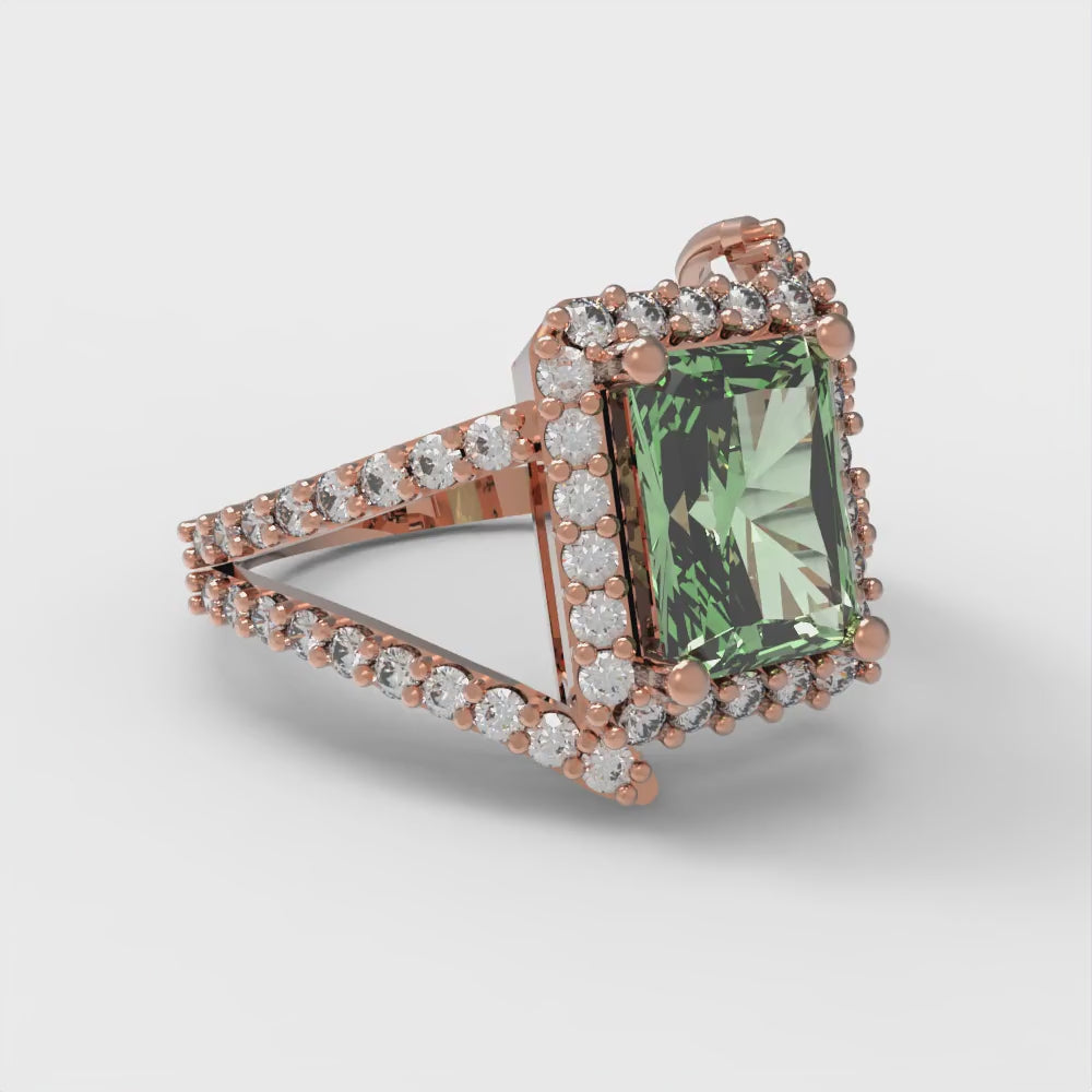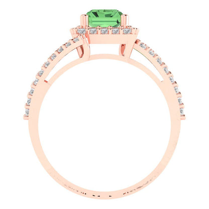 1.935 cttw Zirconia Simulated Green Diamond Solitaire with Zirconia Simulated Diamond Accents Engagement Ring - Solid Gold (VVS1, Emerald Cut,7.5x5.5mm)