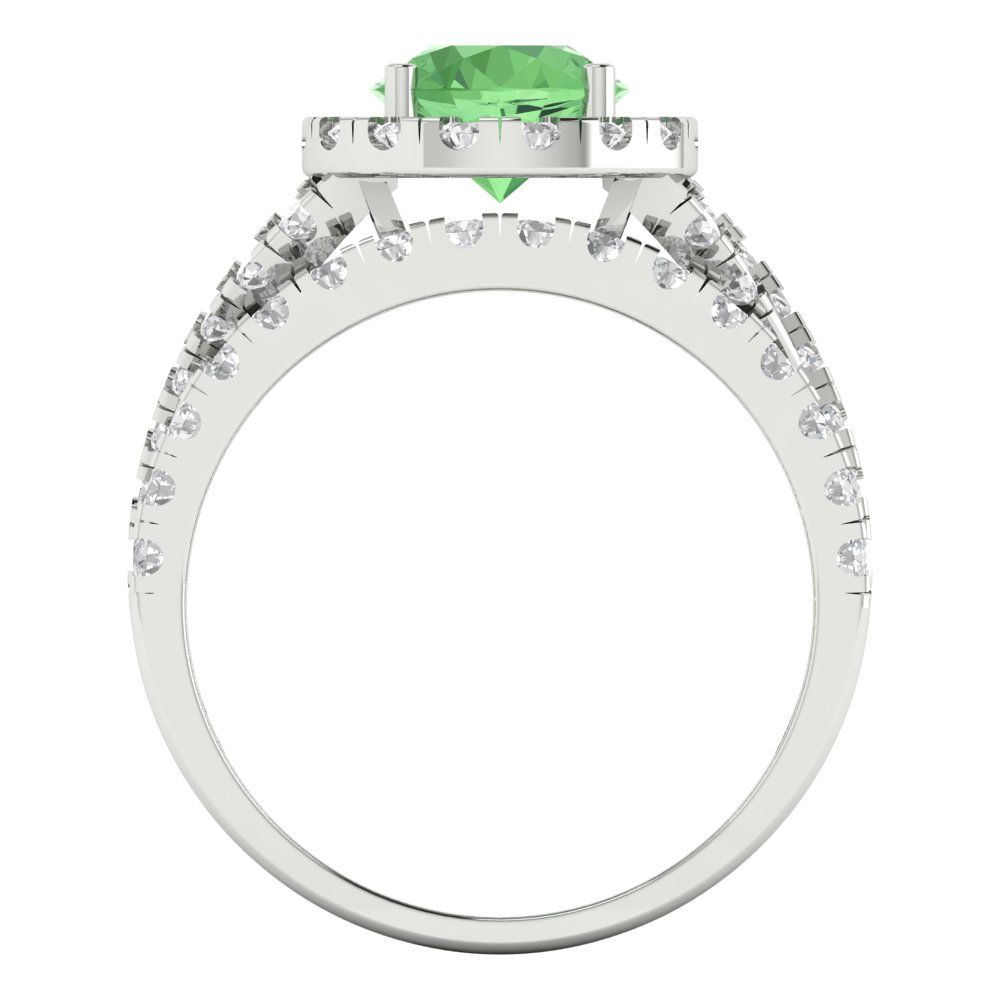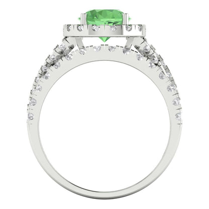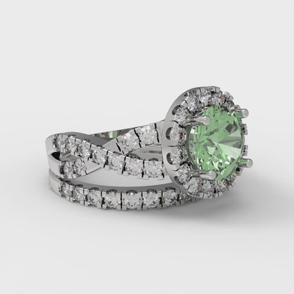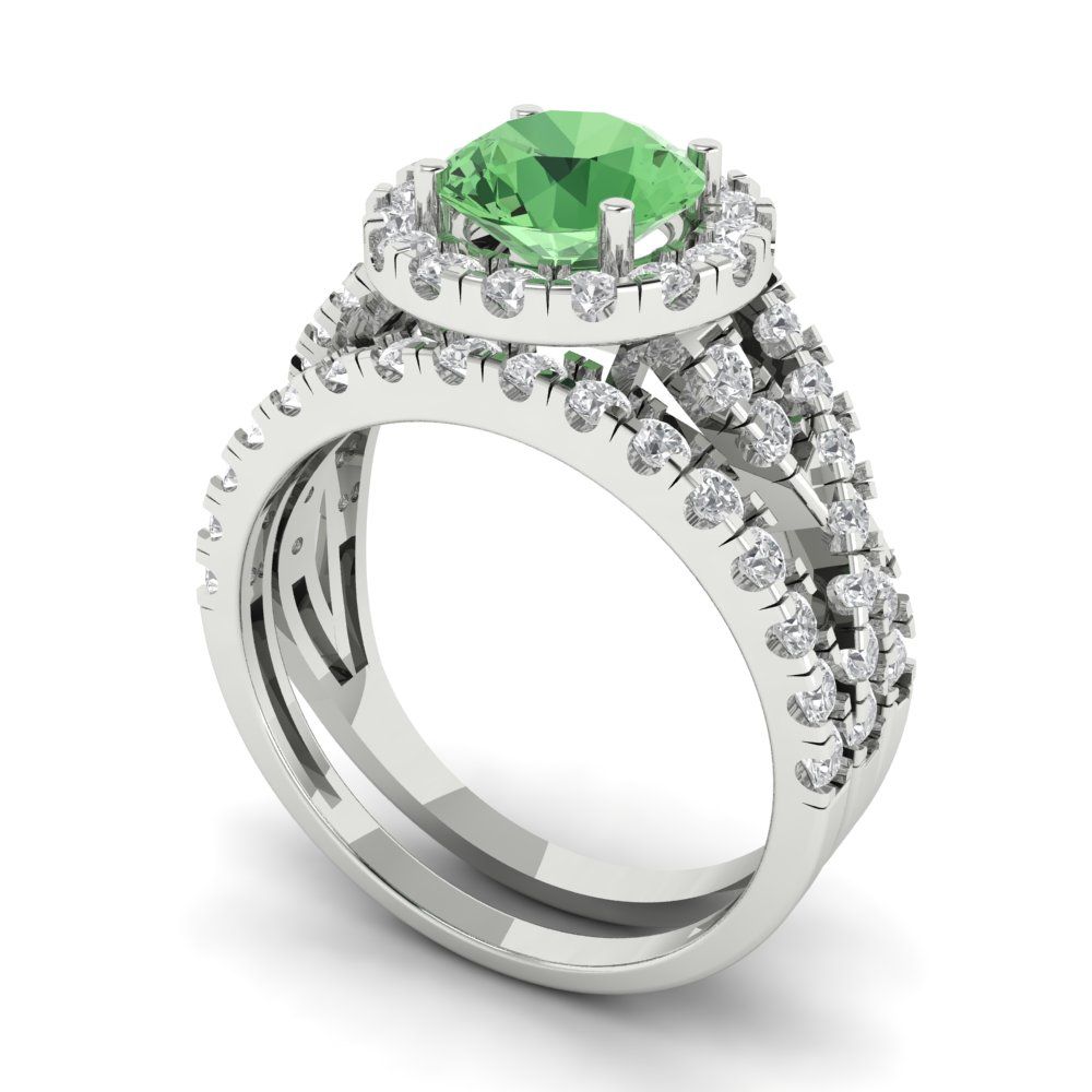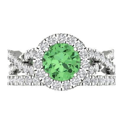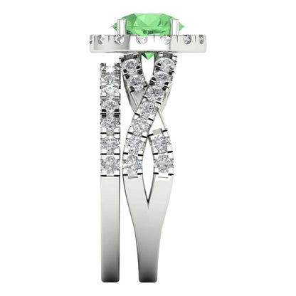 1.795 cttw Round Cut Simulated Green Diamond Bridal Set - Solid White Gold Engagement Ring & Wedding Band