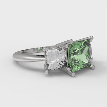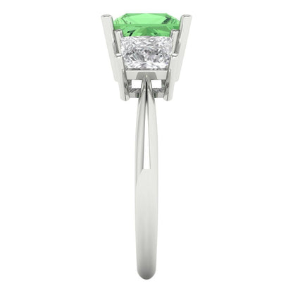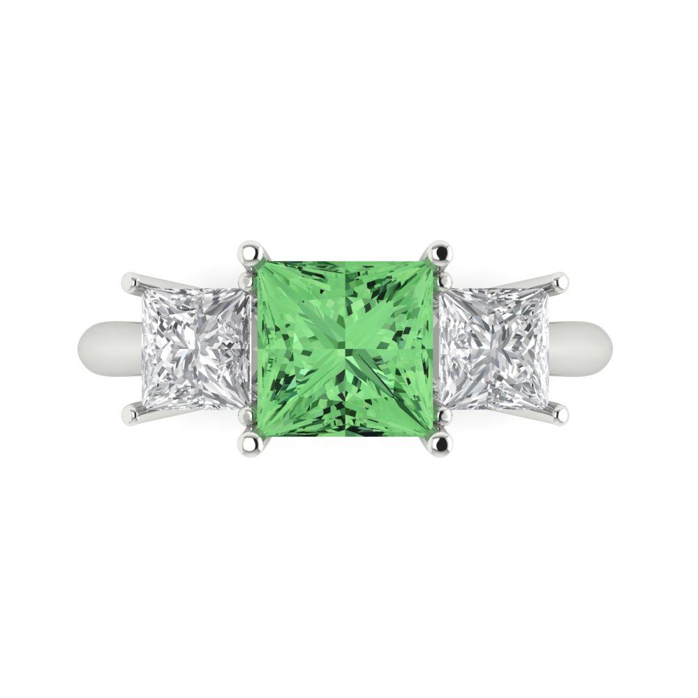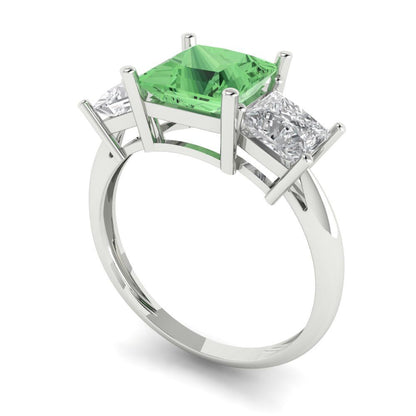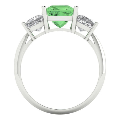 2.5 cttw Zirconia Simulated Green Diamond Three-Stone Engagement Ring - Solid Gold (VVS1, Princess Cut,6.5 mm)