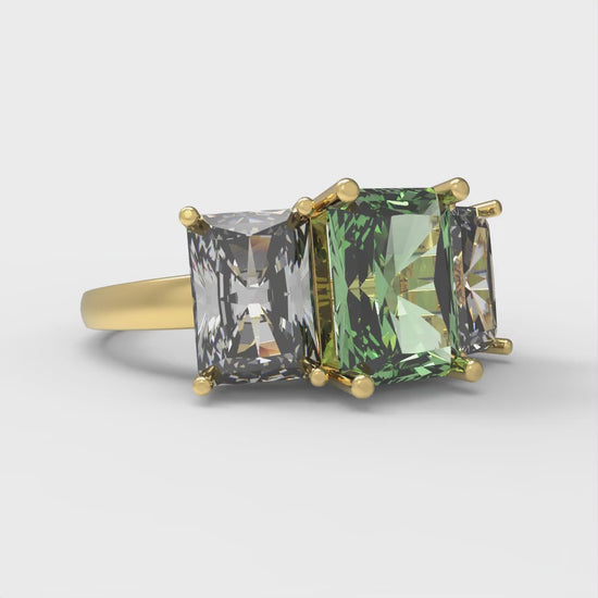 4 cttw Zirconia Simulated Green Diamond Three-Stone Engagement Ring - Solid Gold (VVS1, Emerald Cut,8x6mm)