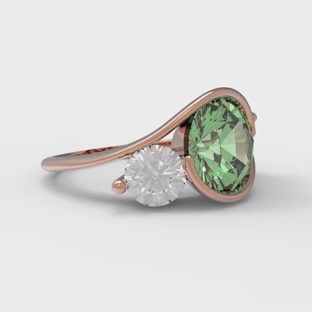 3.5 cttw Zirconia Simulated Green Diamond Three-Stone Engagement Ring - Solid Gold (VVS1, Round Cut,8.0mm)