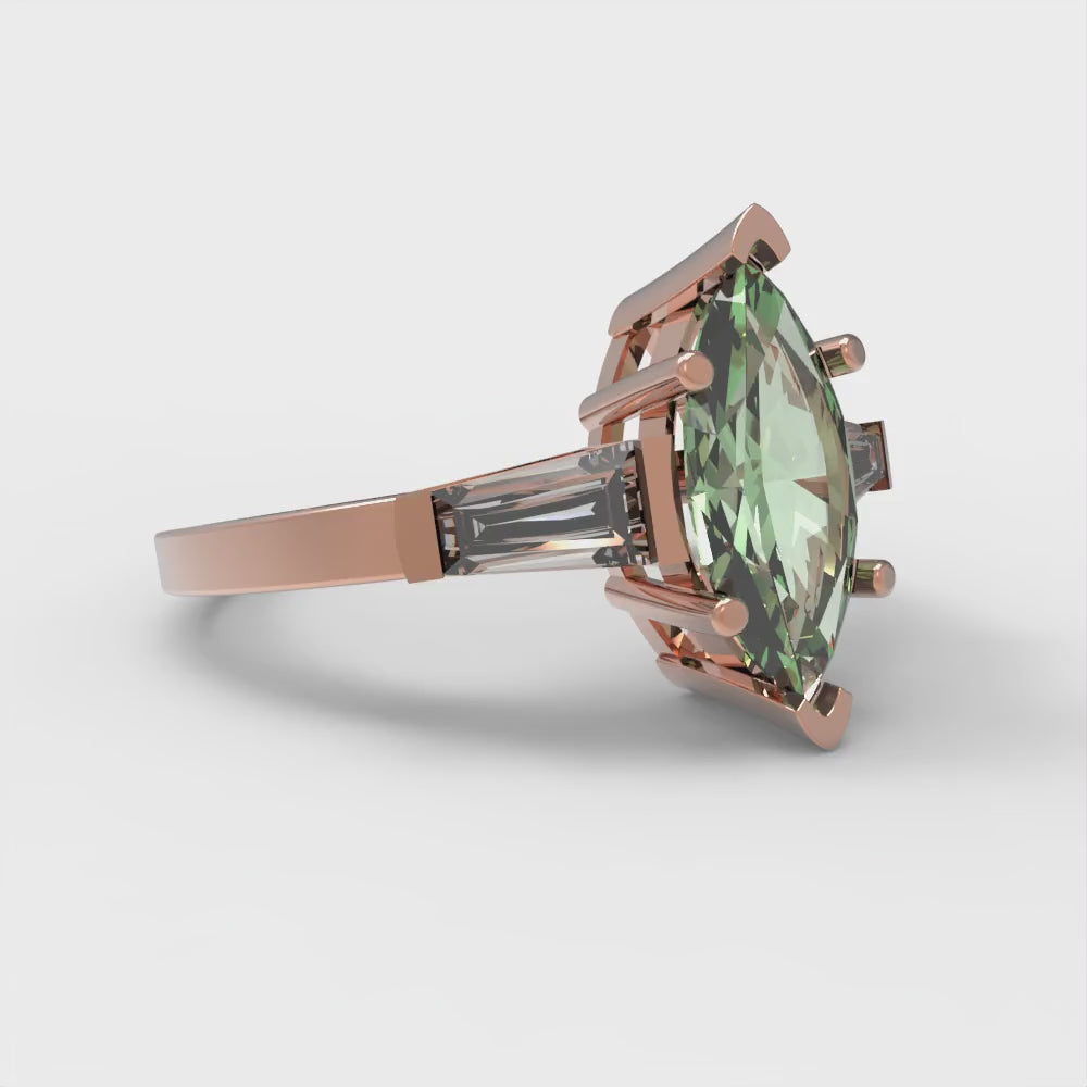 2 cttw Zirconia Simulated Green Diamond Three-Stone Engagement Ring - Solid Gold (VVS1, Marquise Cut,11x5.5mm)