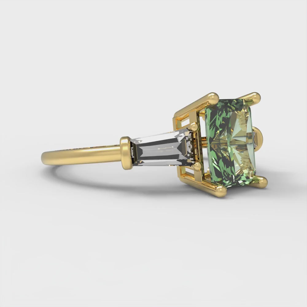 1.5 cttw Zirconia Simulated Green Diamond Three-Stone Engagement Ring - Solid Gold (VVS1, Emerald Cut,7.0x5.0mm)