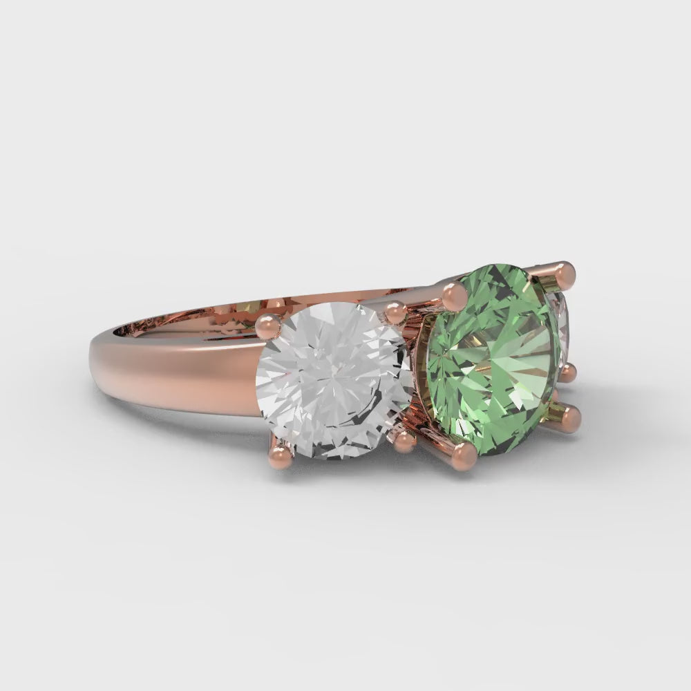 3 cttw Zirconia Simulated Green Diamond Three-Stone Engagement Ring - Solid Gold (VVS1, Round Cut,7.5mm)
