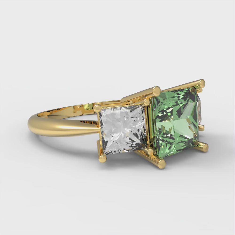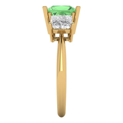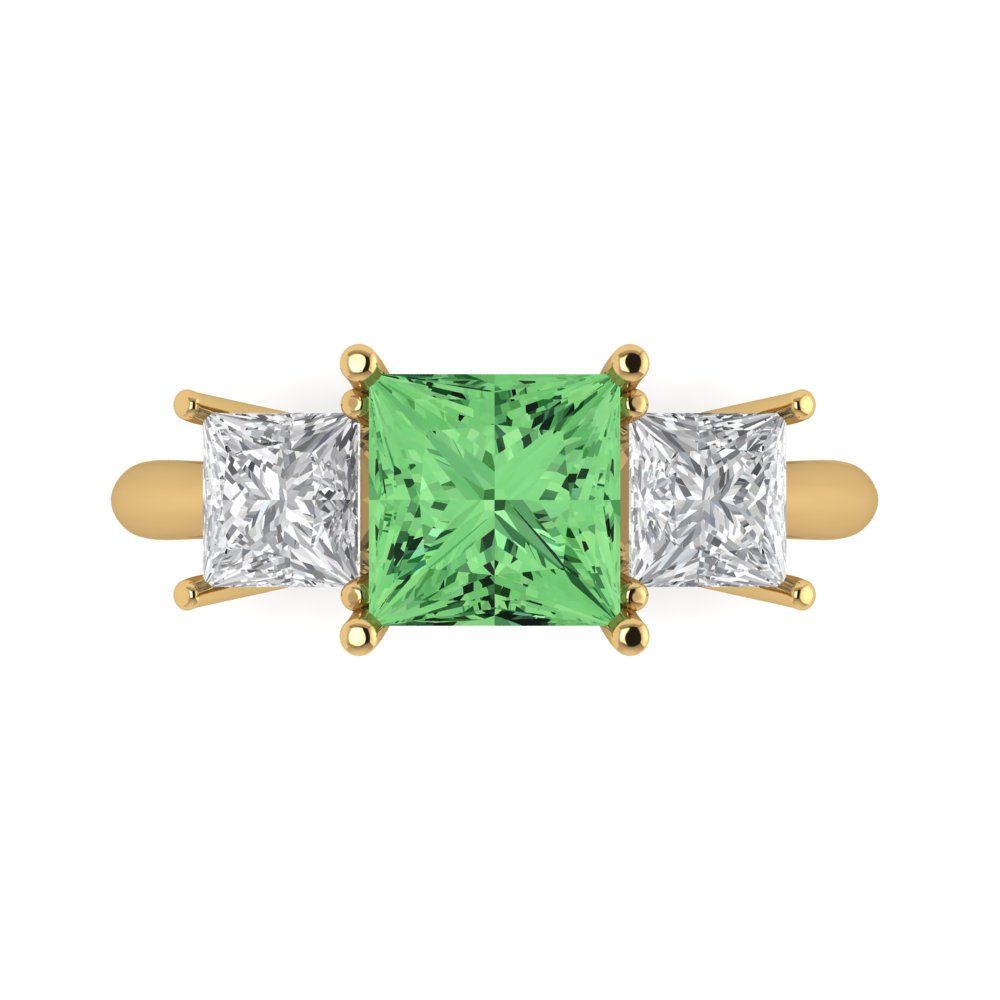 2.5 cttw Zirconia Simulated Green Diamond Three-Stone Engagement Ring - Solid Gold (VVS1, Princess Cut,6.5 mm)