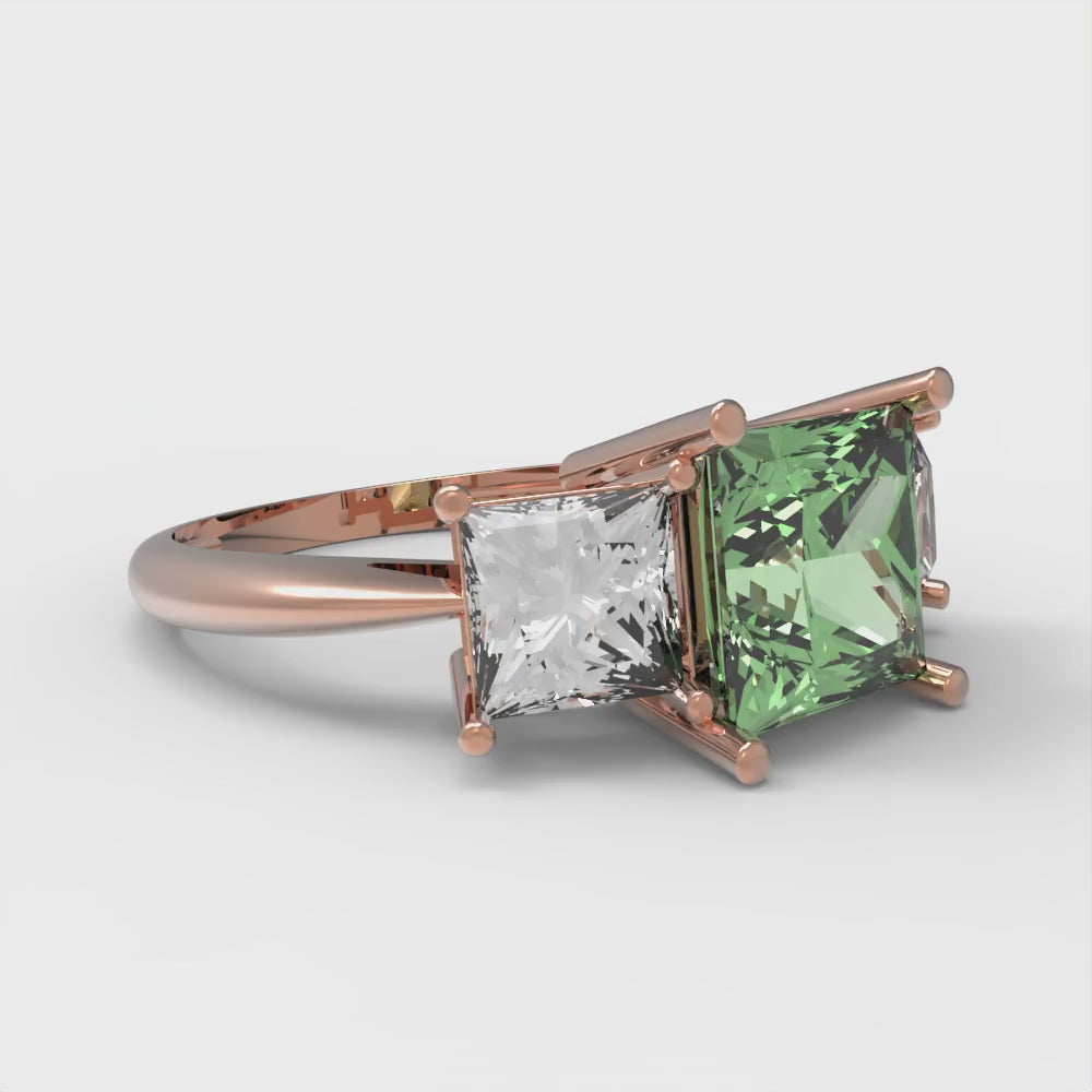 2.5 cttw Zirconia Simulated Green Diamond Three-Stone Engagement Ring - Solid Gold (VVS1, Princess Cut,6.5 mm)