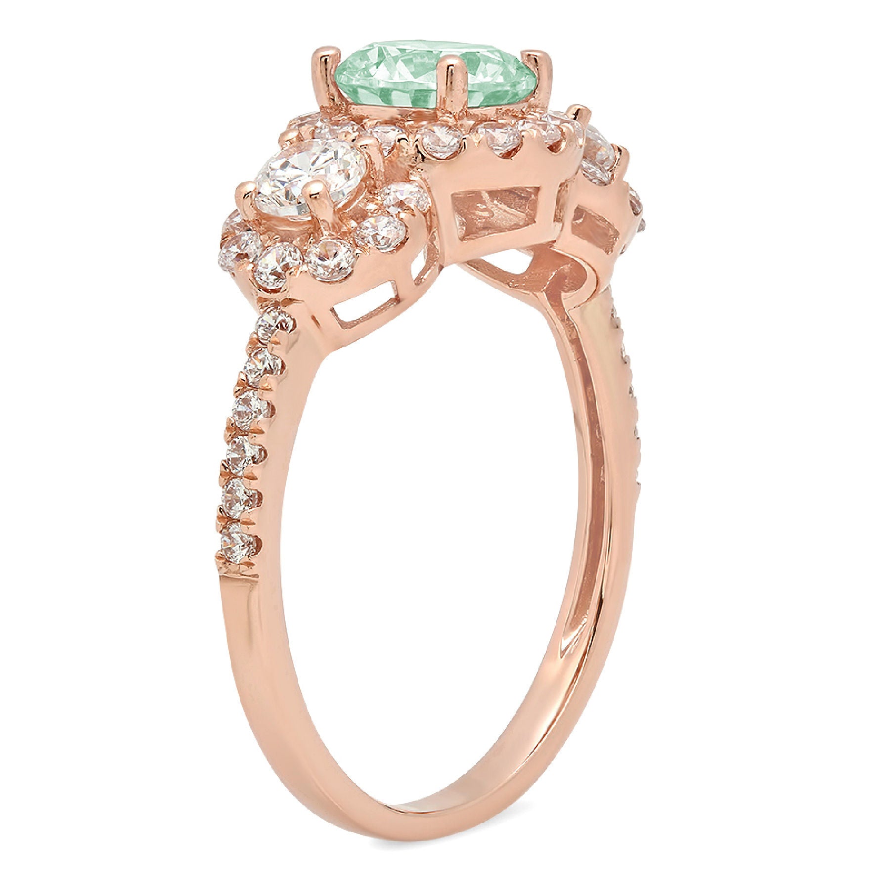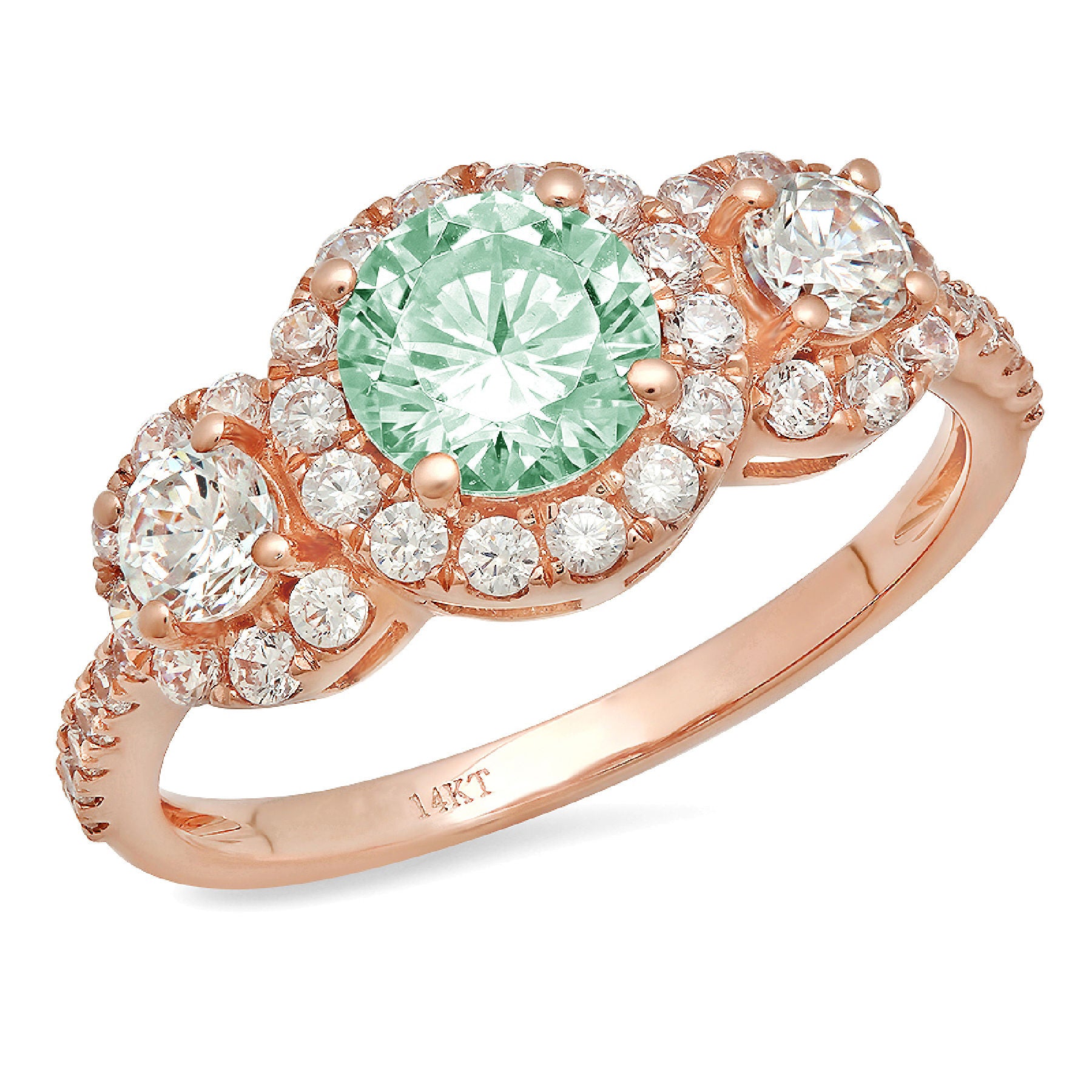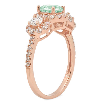 1.46 cttw Zirconia Simulated Green Diamond Three-Stone Engagement Ring - Solid Gold (VVS1, Round Cut,6.0mm)