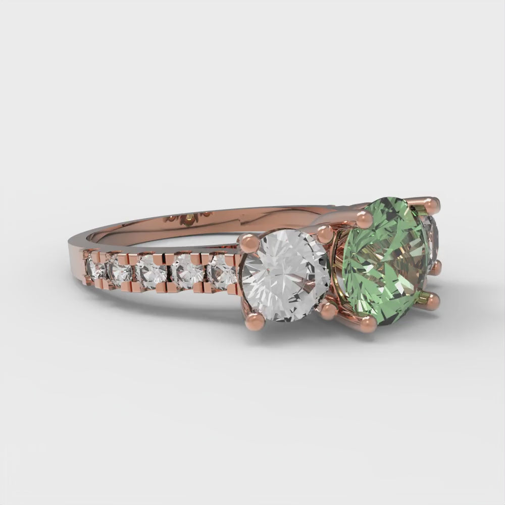1.97 cttw Zirconia Simulated Green Diamond Three-Stone Engagement Ring - Solid Gold (VVS1, Round Cut,6.5mm)