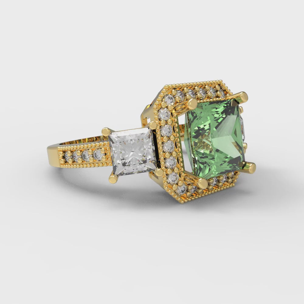3.005 cttw Zirconia Simulated Green Diamond Three-Stone Engagement Ring - Solid Gold (VVS1, Princess Cut,7.0mm)