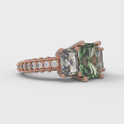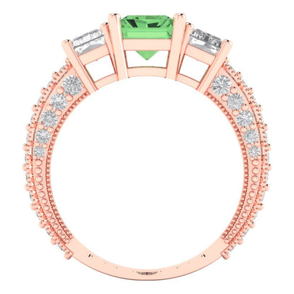 3.61 cttw Zirconia Simulated Green Diamond Three-Stone Engagement Ring - Solid Gold (VVS1, Emerald Cut,8x6mm)