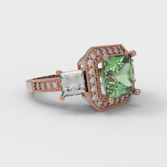 3.005 cttw Zirconia Simulated Green Diamond Three-Stone Engagement Ring - Solid Gold (VVS1, Princess Cut,7.0mm)