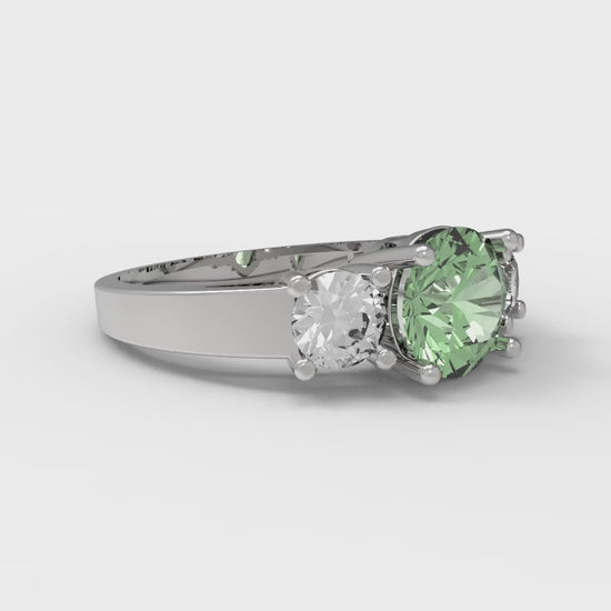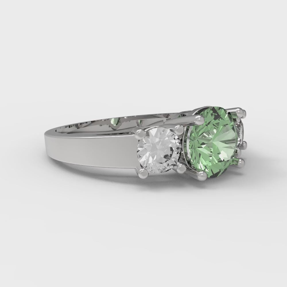 1.5 cttw Zirconia Simulated Green Diamond Three-Stone Engagement Ring - Solid Gold (VVS1, Round Cut,6.5mm)
