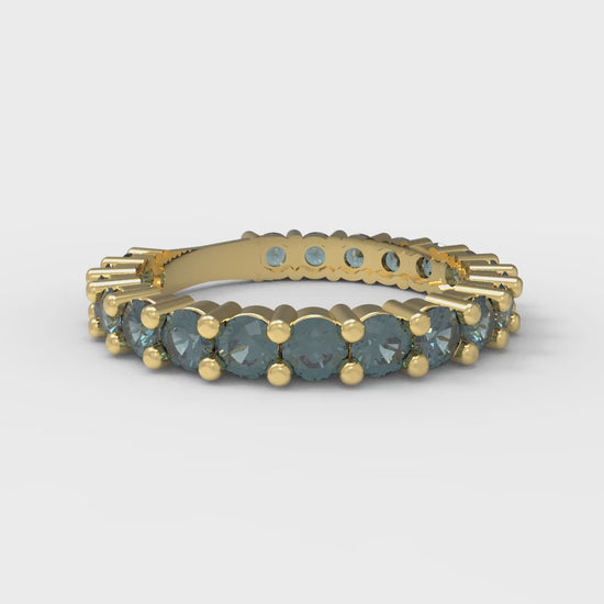1.26 cttw Natural London Blue Topaz Round Cut Yellow Gold Eternity Wedding Band