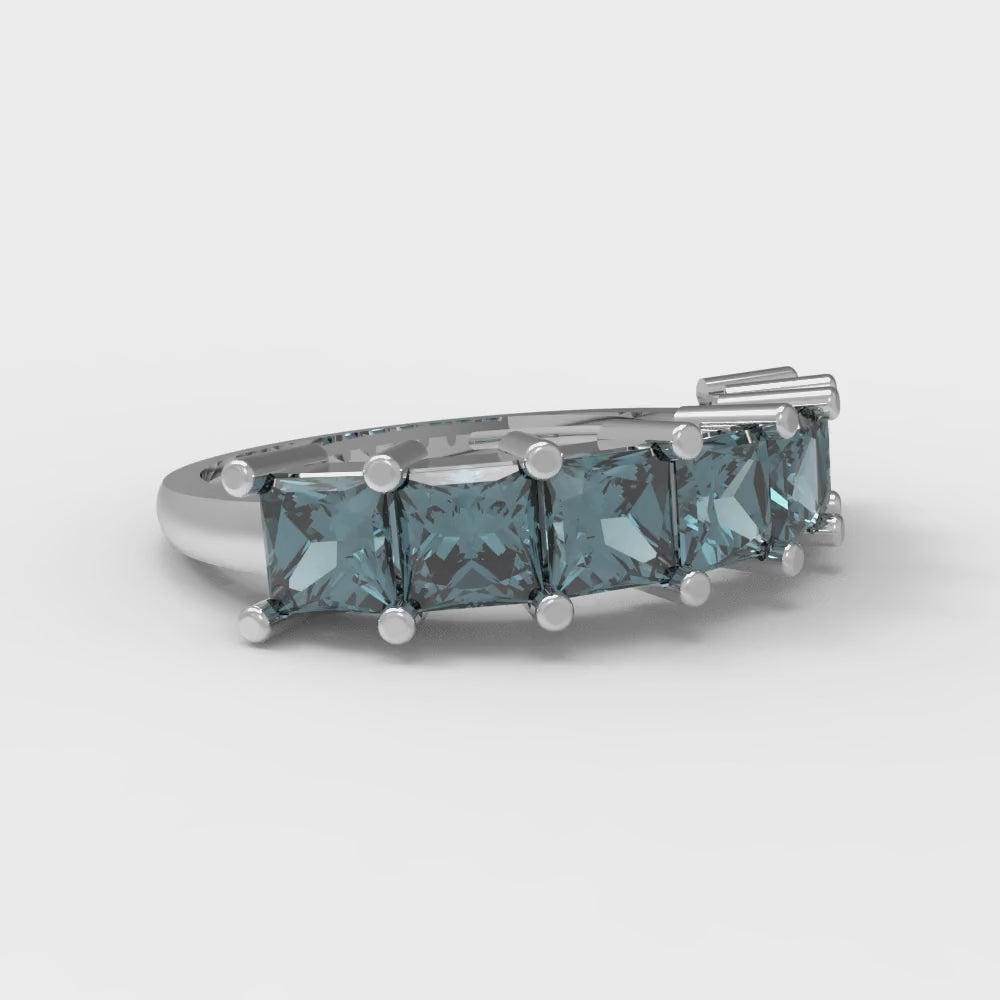 1.75 cttw Natural London Blue Topaz Princess Cut White Gold Eternity Wedding Band